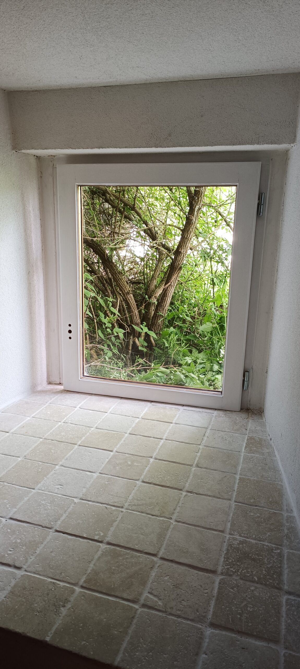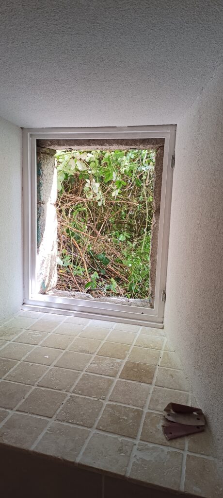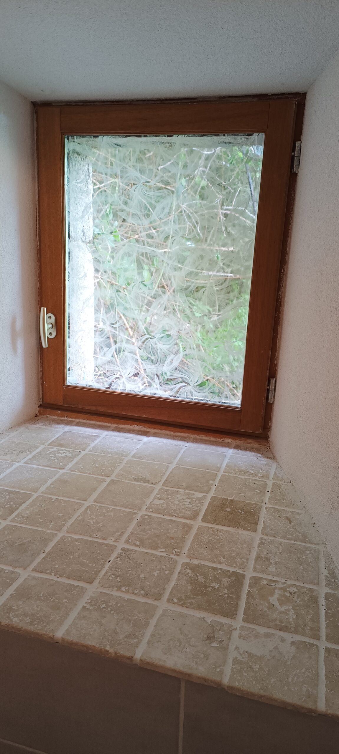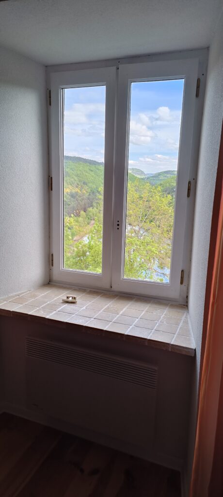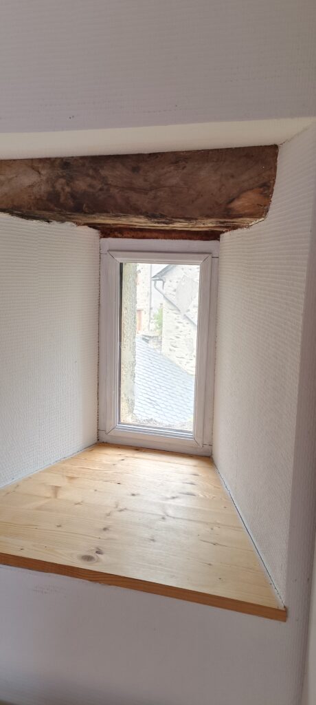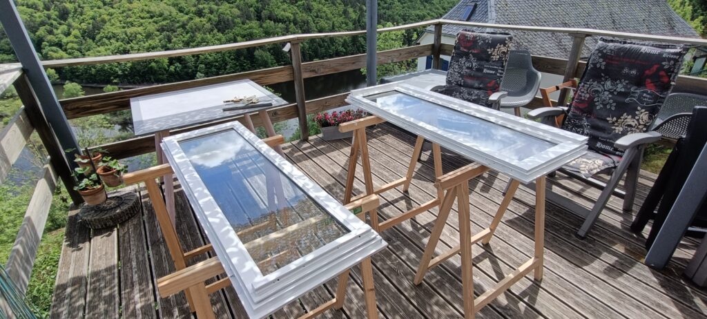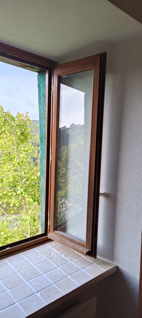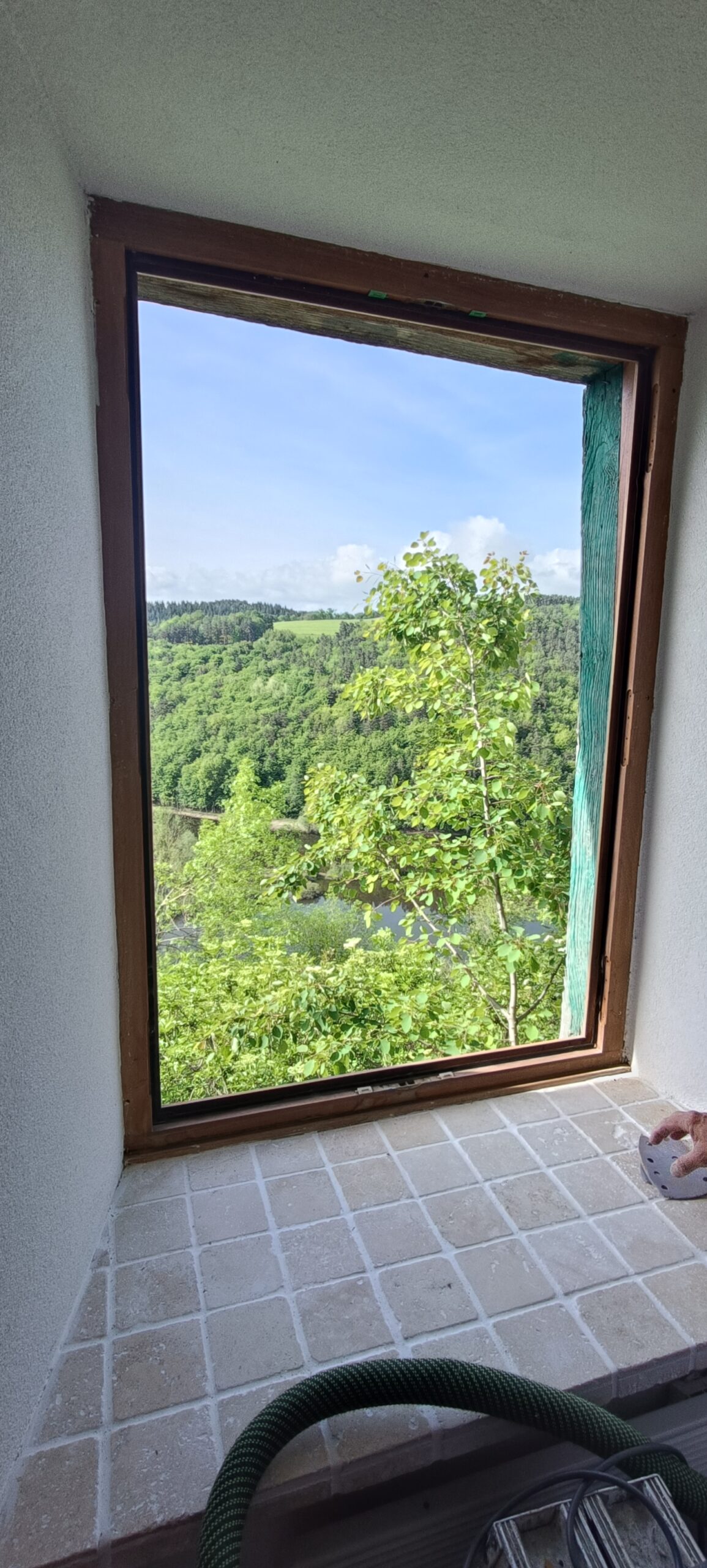 In een dorpje op bijna 850 meter hoogte is een huis met een roden dak. Dit huis mogen schilderen was mij een grote eer. Al heel veel jaar was er niets aan het houtwerk gedaan waardoor veel werk moest worden verzet, houtrot moest worden hersteld, glaslatjes moesten worden vastgemaakt, kitranden worden hersteld en ga zo maar door.